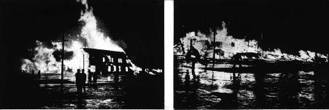Company "D" 341st Engineers were building railroad spers at Dawson Creek B. C. The squad I was with was called out to fight a fire downtown. One of our men lost his life in the explosion. The building that was on fire had been used for storing dynamite. More men from all over joined in trying to get the fire under control. Several people were also injured, and major parts of the town was mostly destroyed.